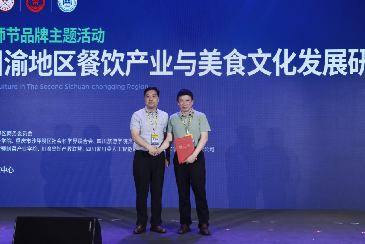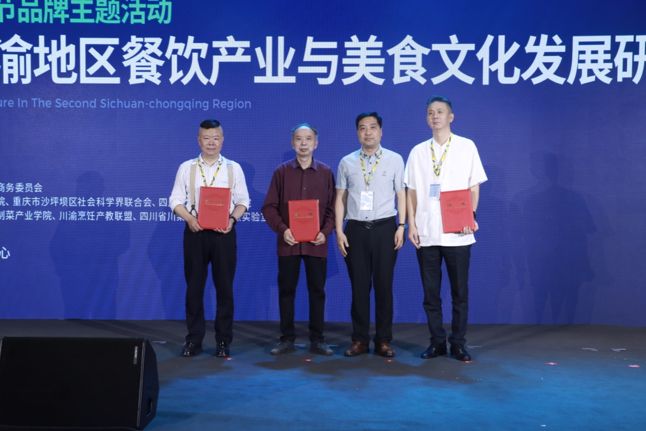 开幕式上,重庆商务职业学院副校长管军为西南大学二级教授、博士生导师蓝勇颁发重庆商务职业学院客座教授聘书,为陈小林、胡晓华、舒家华颁发烹饪专业建设指导专家聘书。