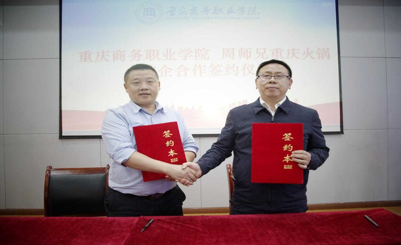 烹饪学院院长与重庆周师兄餐饮文化有限公司企业大学负责人简银安签订校企合作协议,并颁授了实践育人基地牌。贾小波为重庆周师兄餐饮文化有限公司董事长周永林颁发了创业导师聘书,随后周永林为新生带来一场提振职业理想、别开生面的创业专题讲座。