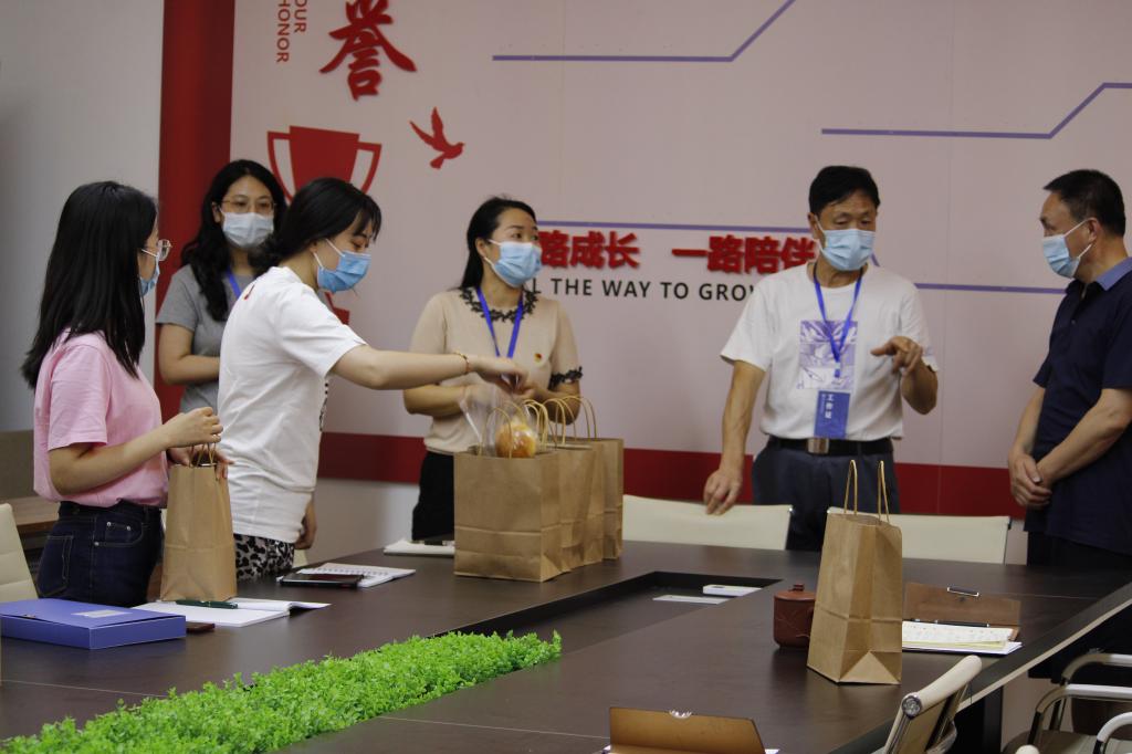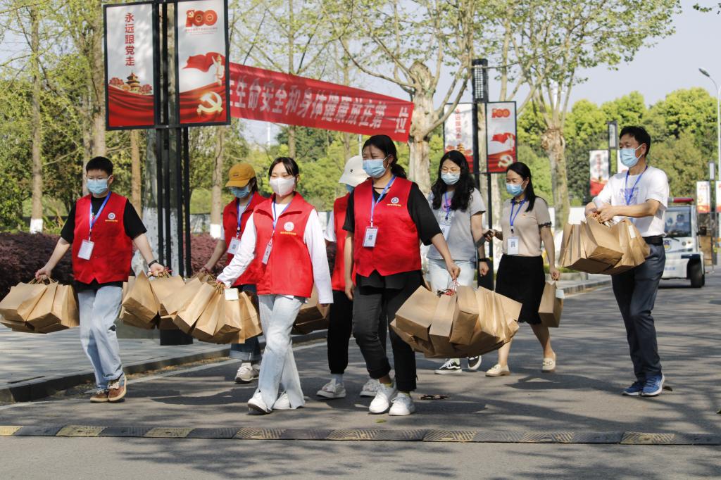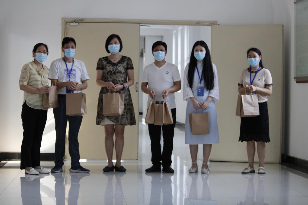 学校工会副主席刘华伦、烹饪学院党总支副书记陈小容带着烹饪学院志愿者们一同将南岸校区师生亲手准备的小礼物送到奋斗在学校抗疫一线的老师们手里,感谢他们夜以继日地为同学们保驾护航。