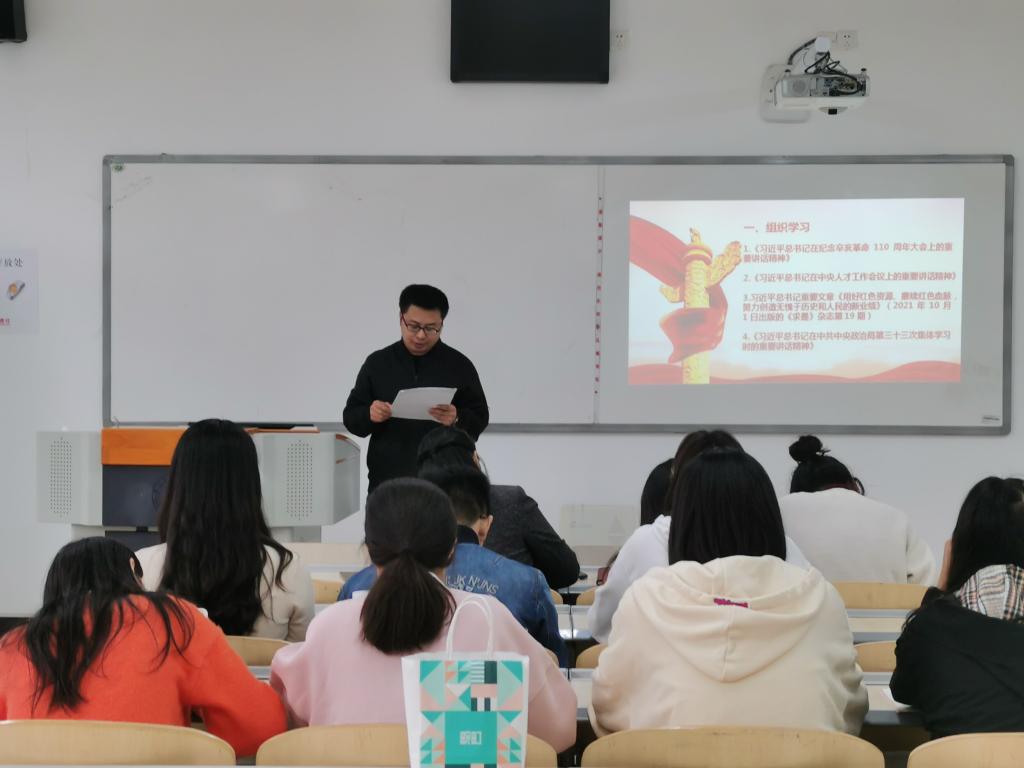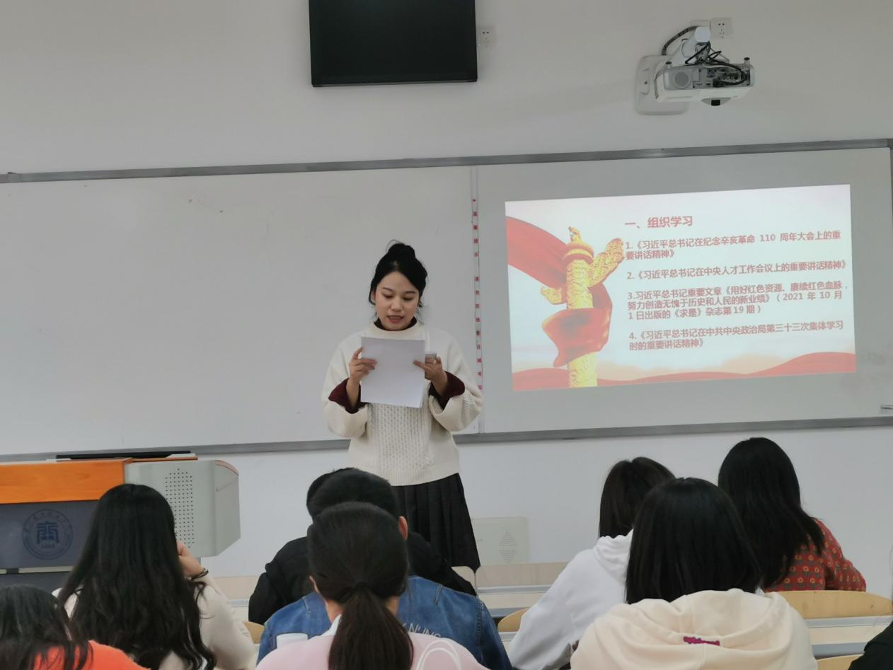 2021年10月29日15:30,烹饪学院学生党支部在2115教室开展了“学党史 守初心 办实事”10月主题党日活动,全体党员参会,会议由支部书记邵玉华同志主持,本次活动有两个阶段。