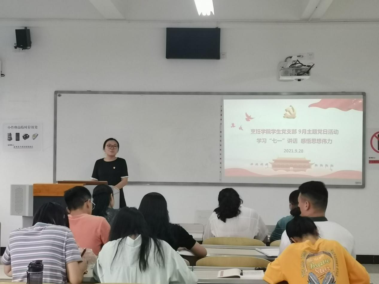 2021年9月28日,烹饪学院学生党支部在2111教室开展了9月主题党日活动,全体党员参会,会议由支部书记邵玉华主持。