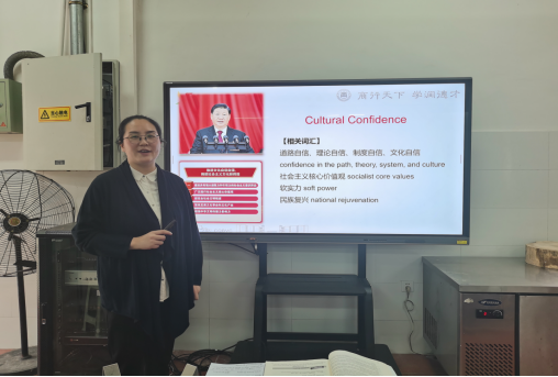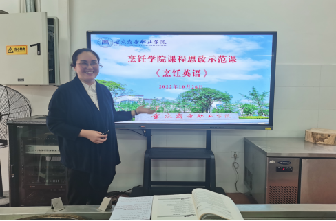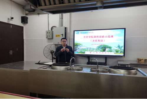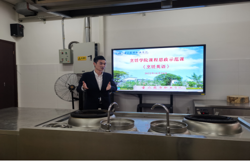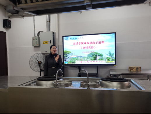 烹饪工艺与营养教研室刘秀婷老师进行了课程思政示范授课,以烹饪文化自信、职业认同、工匠精神等为切入点,结合课程性质,以菜品历史导入、职业情景模拟等形式,展开了一堂厚重而生动、有“盐”又有料的精彩课堂。
