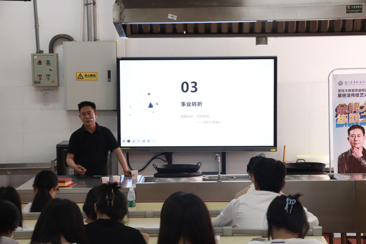 为增强烹饪学院师生与行业大师的经验交流,提升烹饪学子的从业热情,2024年5月22日下午,烹饪学院“行业大师进校园” 系列活动第5期在烹饪实训中心举行,特邀重庆皓元食品股份有限公司研发中心总监黄友民大师为烹饪学院师生授课,吸引了近百名师生聆听。