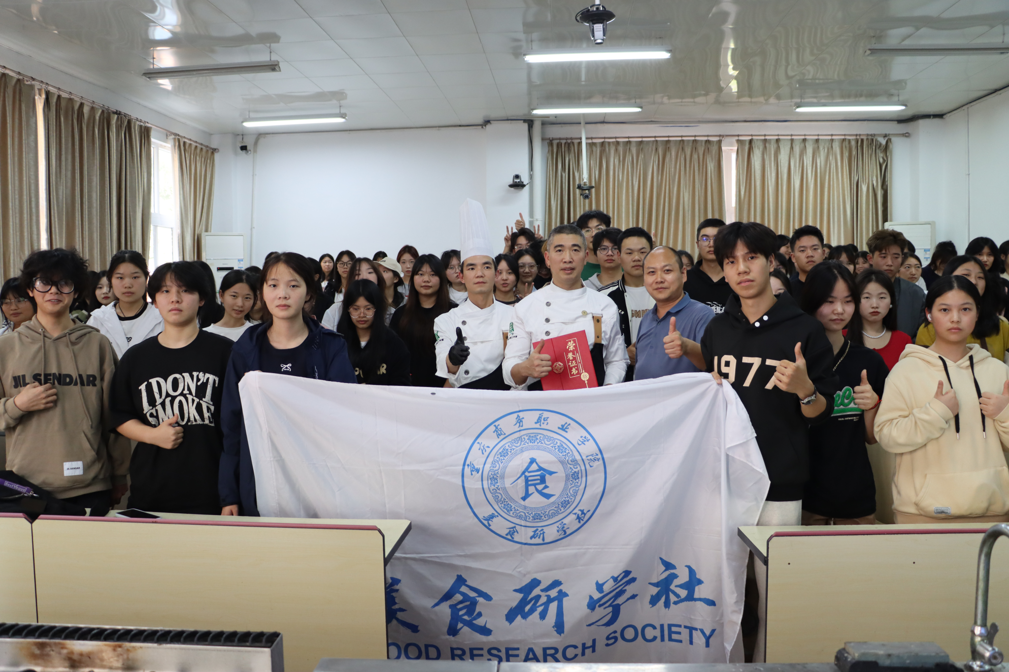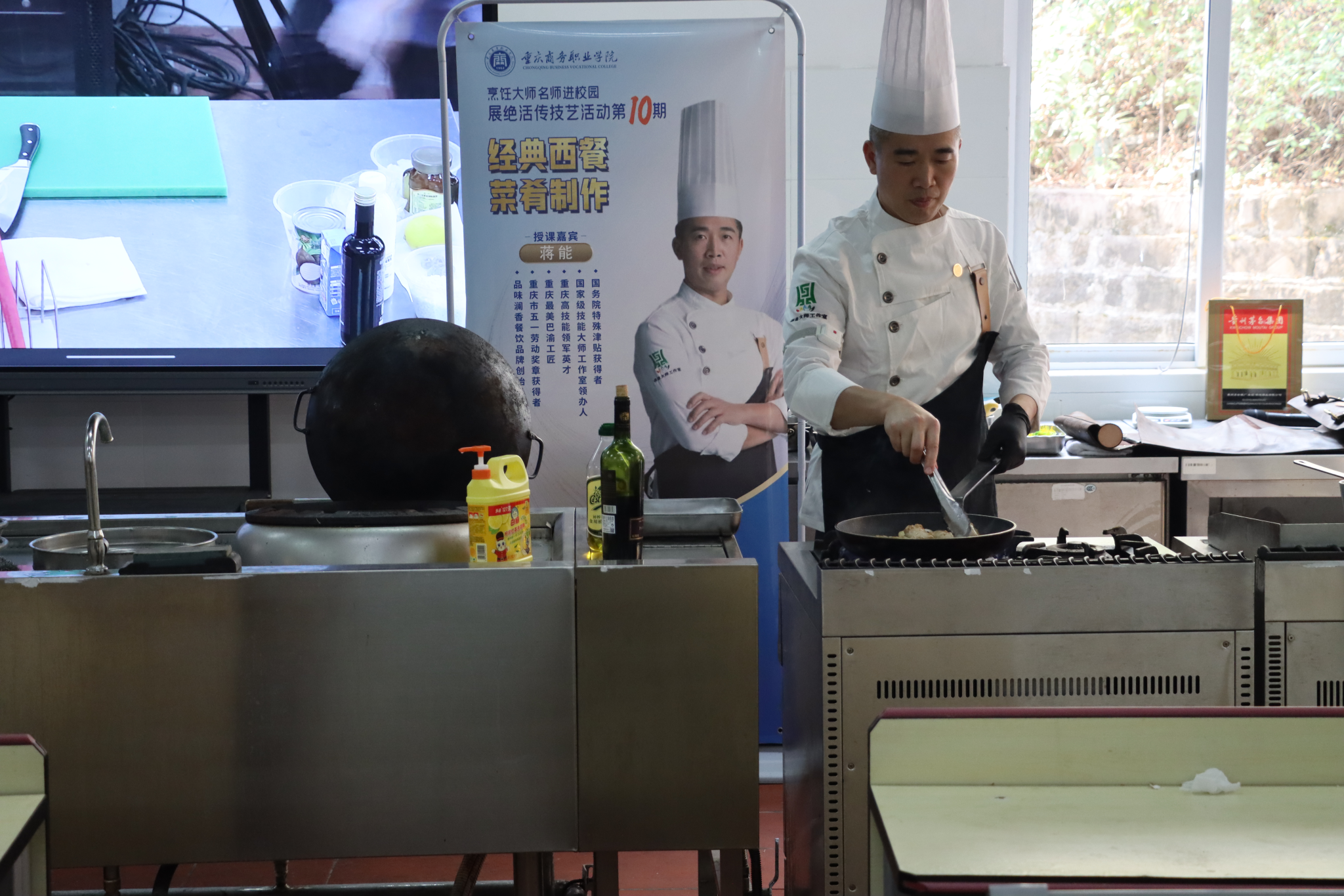 2024年10月9日下午,烹饪学院“烹饪大师名师进校园”系列活动第10期在烹饪实训中心智能演播厅举行。为让烹饪专业师生领略大师经典西餐菜肴制作技艺,特邀国家技能大师蒋能老师为烹饪学院师生、美食研学社同学授课。