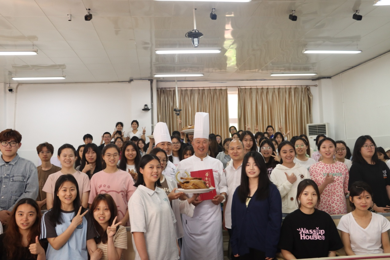 卤水的芳香弥漫整个教室,出锅的老卤匠肖鸭子诱人馋涎,同学们现场品尝非遗卤鸭,并与刘董事长交流请教卤水知识和技艺,领略技艺精湛的中华烹饪艺术,感受博大精深的中华饮食文化。
