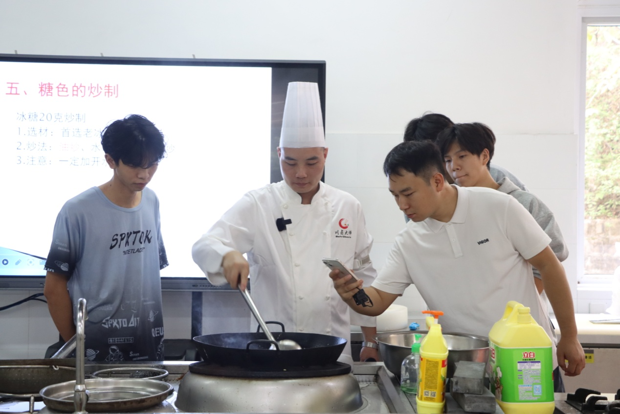 川式卤菜是巴蜀地区饮食文化的重要代表。它融合了巴蜀地区丰富的香料资源和独特的烹饪技艺,体现了巴蜀人民对美食的热爱和追求。川式卤菜在色泽、香气、味道、口感等方面,都独具特色。通过王桃老师此次富有激情活力和极具语言艺术魅力的授课,让同学们亲见到了精湛的川卤技艺,对川式制卤菜有了更为全面深入的认识,对今后的创业之路有了更为宽阔的赛道和更多的选择。