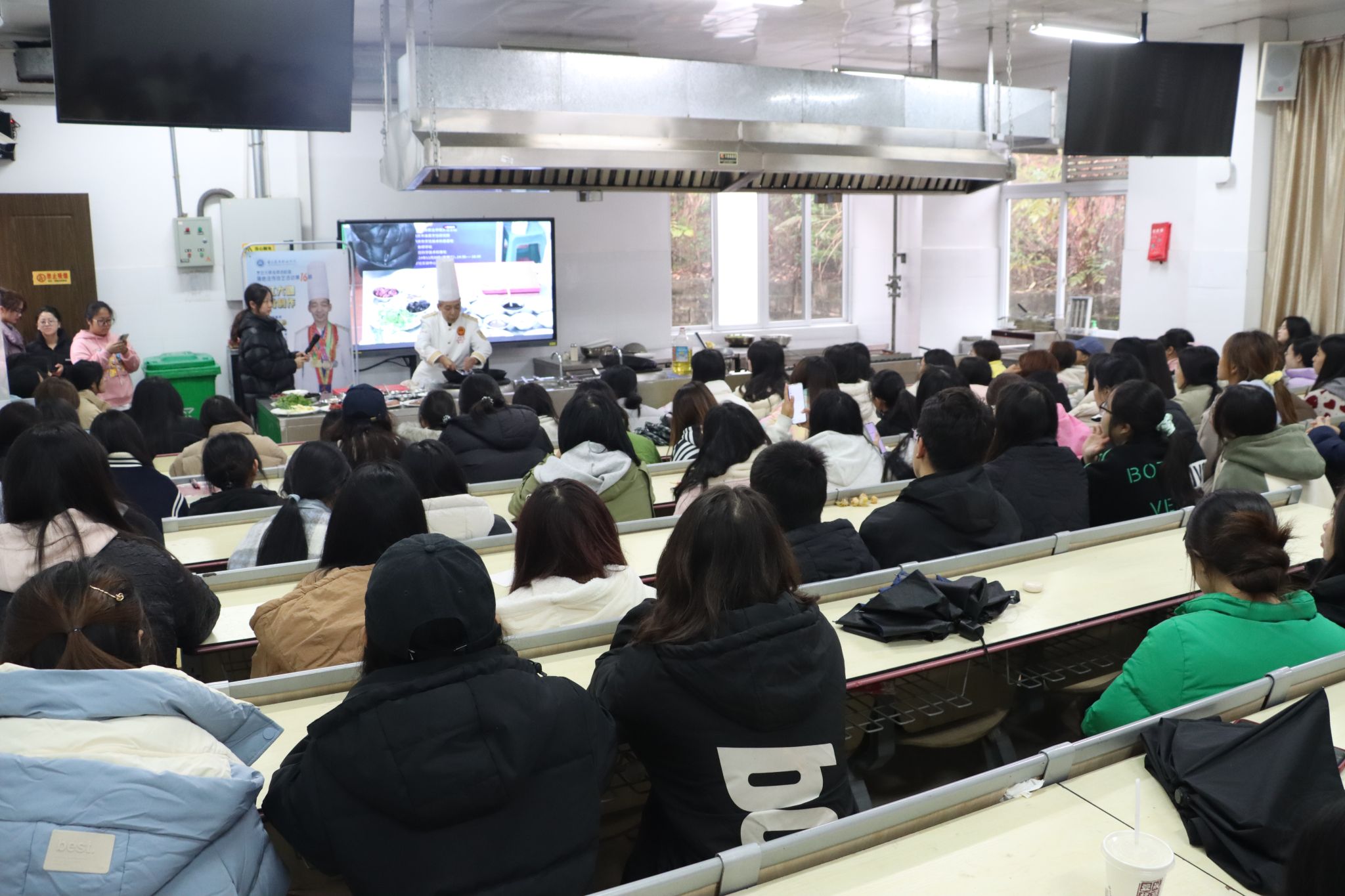 2024年12月4日,烹饪学院行业大师进校园“展绝活传技艺”活动第16期在烹饪实训中心智能演播厅举行。本次活动邀请到了黎云波大师为烹饪专业师生、美食研学社、烹饪科学技术科普社的美食爱好者授课,主题为网红大咖的传统菜肴制作。