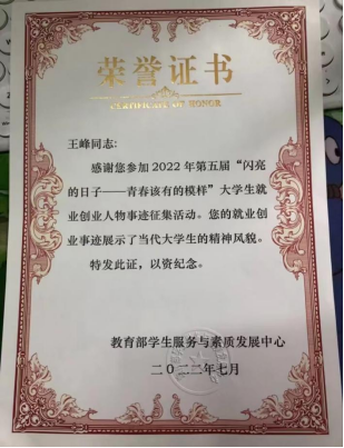 “各奋愚公之愿,即可移山;共怀精卫之心,不难填海”。2个多月的工作,他连续在大观镇高速路口参与疫情防控工作106天,服务850余小时,排查市外来南返南车辆1000余辆、2000余人。在大家的齐心协力下,他和他的同事们共同守护了南川人民的生命安全。这段参与疫情防控的经历让王峰更加深刻地体会了“功成不必在我,功成必将有我”。