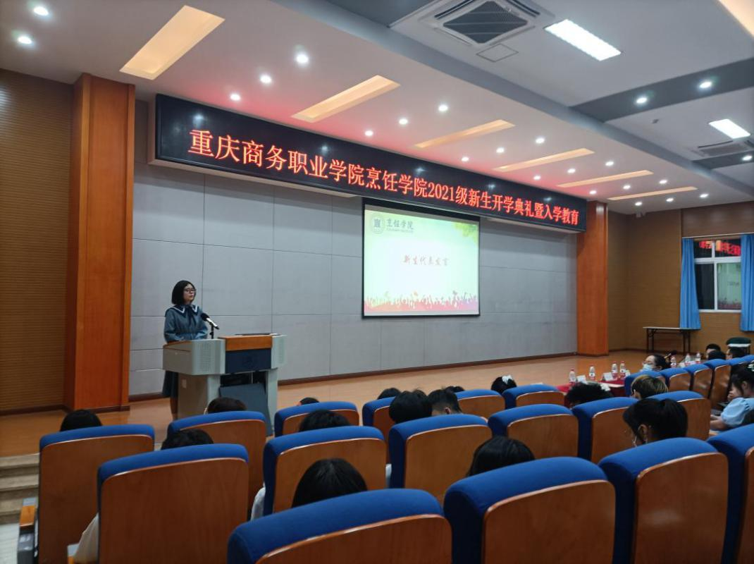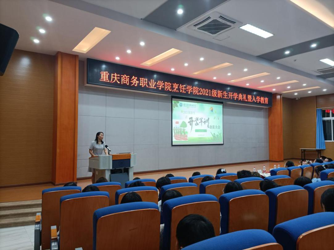 党总支书记、院长李伟为新生带来生动的开学第一课。他从蒸蒸日上的重庆商务职业学院、未来可期的烹饪学院、大有可为的重商学子等三个方面展开,围绕学校发展历程和院系发展前景进行详细介绍,激励学生要增强专业认同感,树立个人发展与学院共成长的信心,又结合个人人生经历,勉励大学生明确目标、立志奋斗、成长成才。