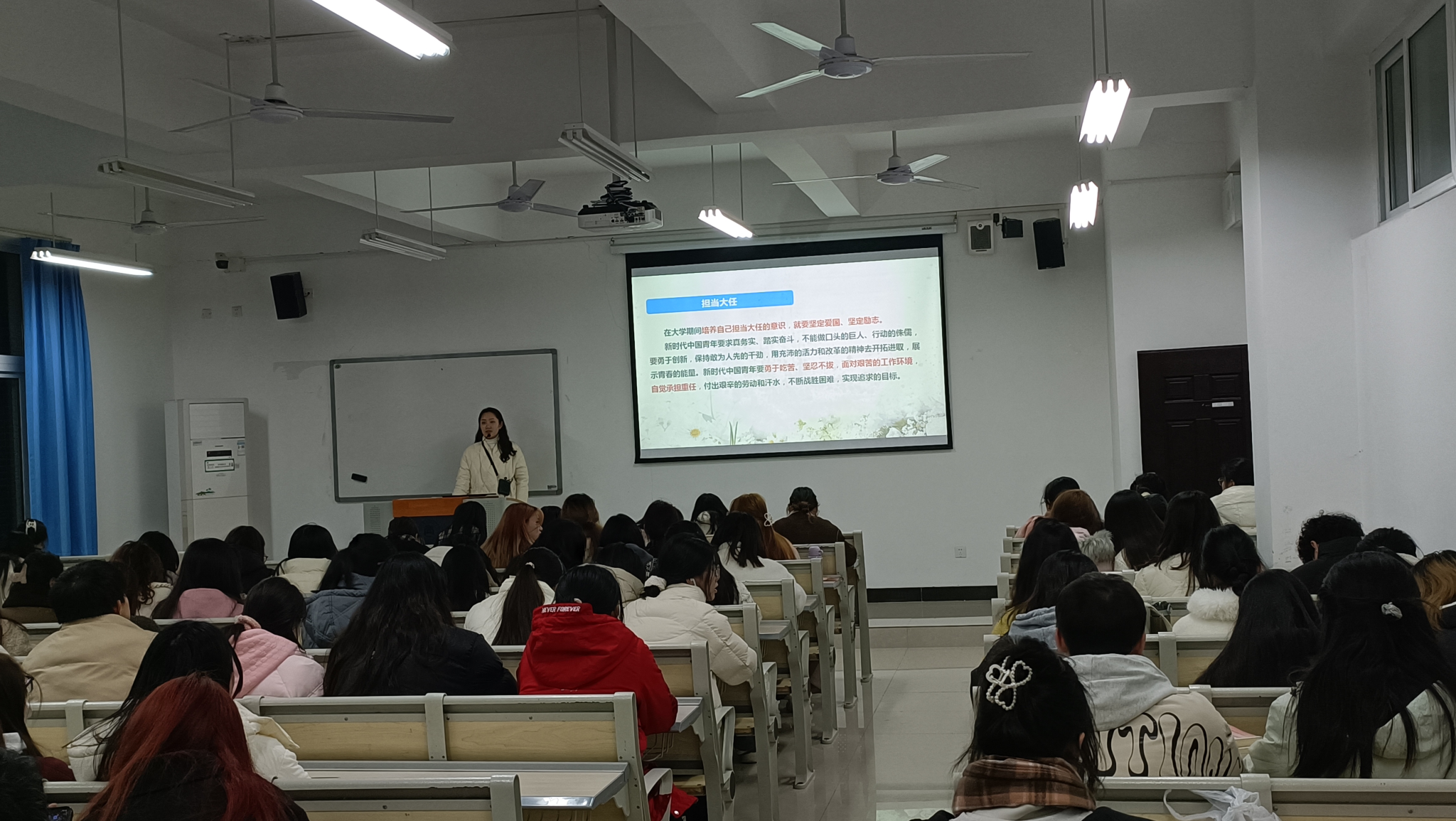 近年来,“佛系、丧、躺平、摆烂”等网络热词在新媒体、自媒体等平台肆意蔓延,对大学生思想价值观念产生了消极影响,导致部分大学生出现学习目标不明确、学习动力不足、生活得过且过、懒惰放纵等不良行为倾向。辅导员通过分享新春热映电影《热辣滚烫》和《飞驰人生2》带来的思考和启迪,勉励同学们要想拥有热辣滚烫的人生,必须弘扬龙马精神,拥有生龙活虎的精神气,寄语同学们要时时镌刻“强国有我”的历史使命感,争做“志存高远”的追梦人。