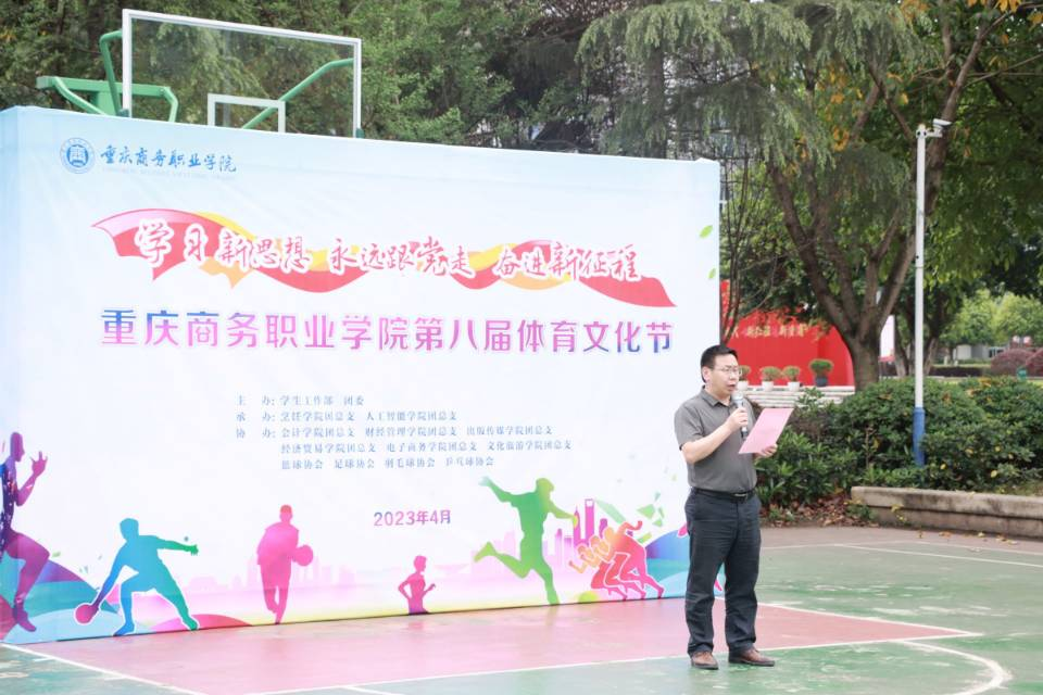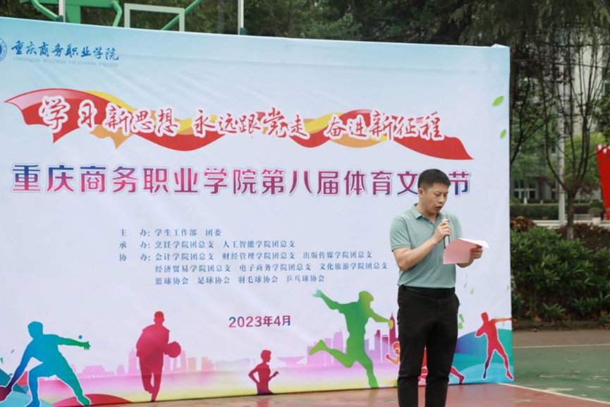 为积极响应党的二十大建设体育强国的号召,进一步丰富校园文化生活,展现重商学子青春向党的精神面貌, 2023年4月20日,重庆商务职业学院第八届体育文化节开幕式在篮球场举行。学校学生工作部部长胡大勇,团委书记邓健,烹饪学院党总支书记、院长李伟,人工智能学院党总支副书记牛怡君及各学院团总支书记、运动员代表出席了此次活动。