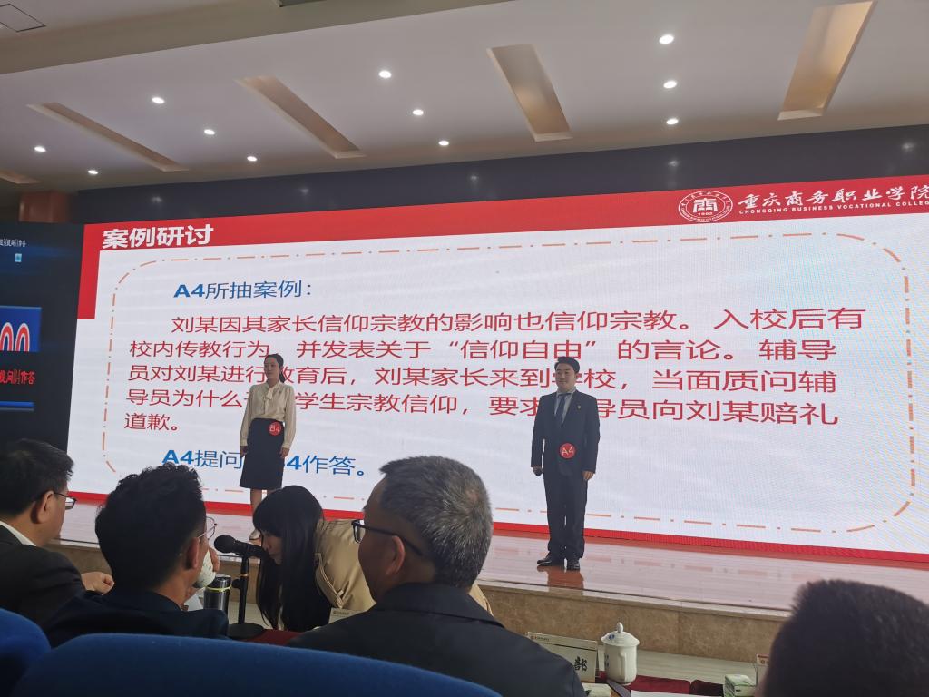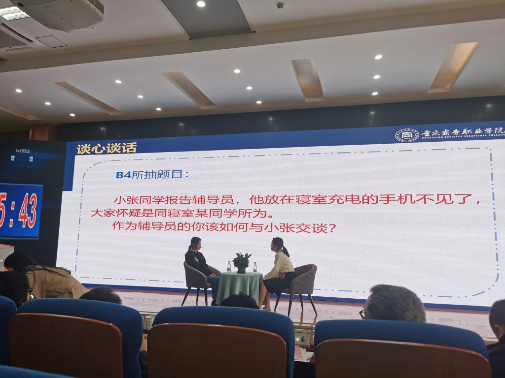 学校第六届辅导员素质能力大赛包括学院初赛和学校决赛,包括基础知识测试、案例研讨、谈心谈话三个环节,旨在不断提升高校辅导员的理论水平、职业素养和工作能力。
