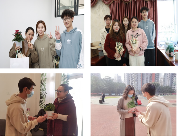 阳春三月暖,巾帼展风采。3月8日,正值“三八”国际劳动妇女节来临之际,为了向辛勤培养引导我们的“女园丁们”表达深深的谢意和浓浓的祝福,烹饪学院开展了“三八”妇女节慰问活动,学院班子成员送上了学校为女教师们精心准备的鲜花和甜点,团总支、学生会代表全体学生为大学城和南岸两个校区的女老师们送上精致盆栽,并致以诚挚的问候和节日的祝福。