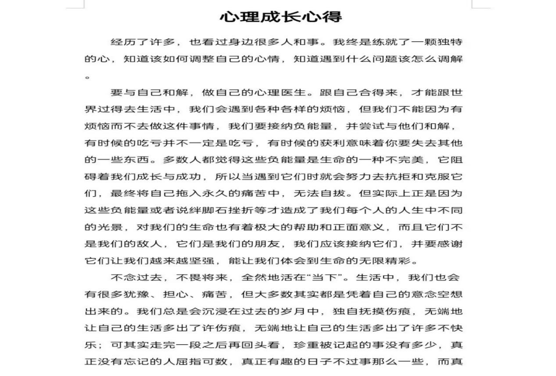 为帮助同学们更加清晰的认识自我、表达自己,感悟自我心理成长过程,“成长心得”征文活动让同学们积极的关注自身变化,调整好自身状态,感悟在最美的年纪遇见最美的自己。