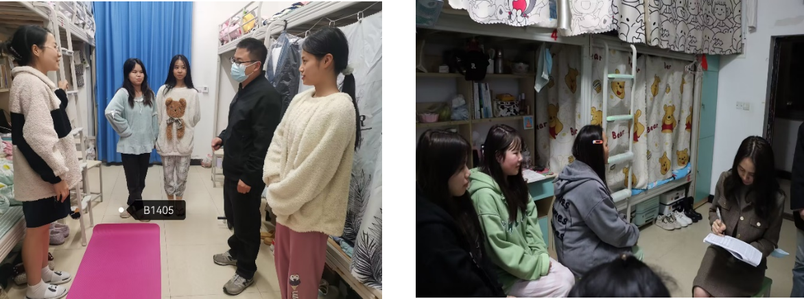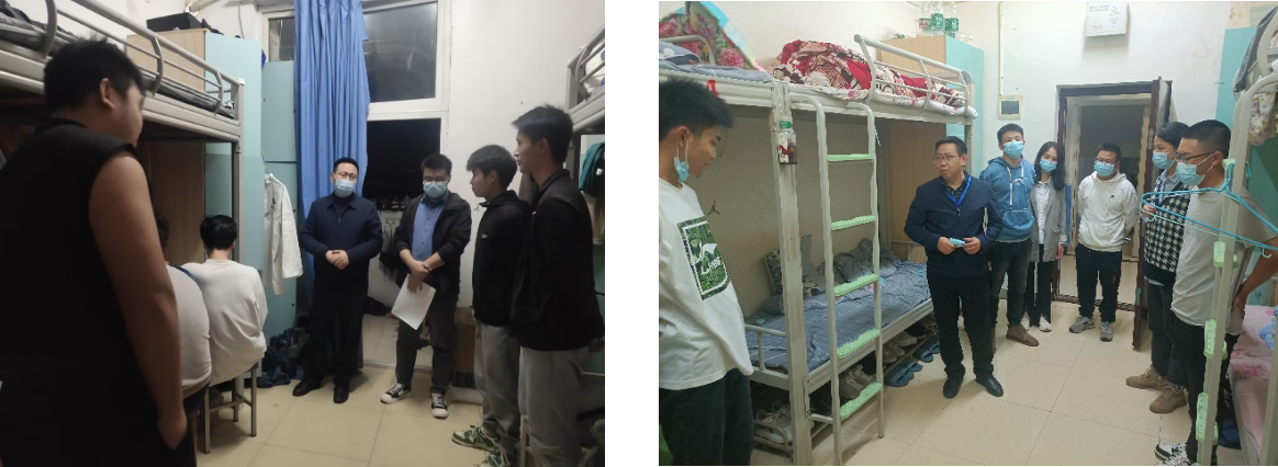 近日,重庆市内疫情形式依然严峻,为积极配合疫情防控要求,落实学校疫情防控专题会议精神,筑牢校园安全防线,全面了解校园封闭管理期间的学生思想健康情况和思想动态,共同保障全体师生安全。烹饪学院党总支书记、院长李伟带领在校教师、辅导员不定期、不定时走访学生宿舍,向同学们传达学校疫情防控政策要求,了解线上教学效果,及时帮助大家解决遇到的时机困难和问题,把学校和学院的关心与爱护送到同学们的心坎上,切实关心学生身体健康状况,将学校疫情防控政策落到实处。