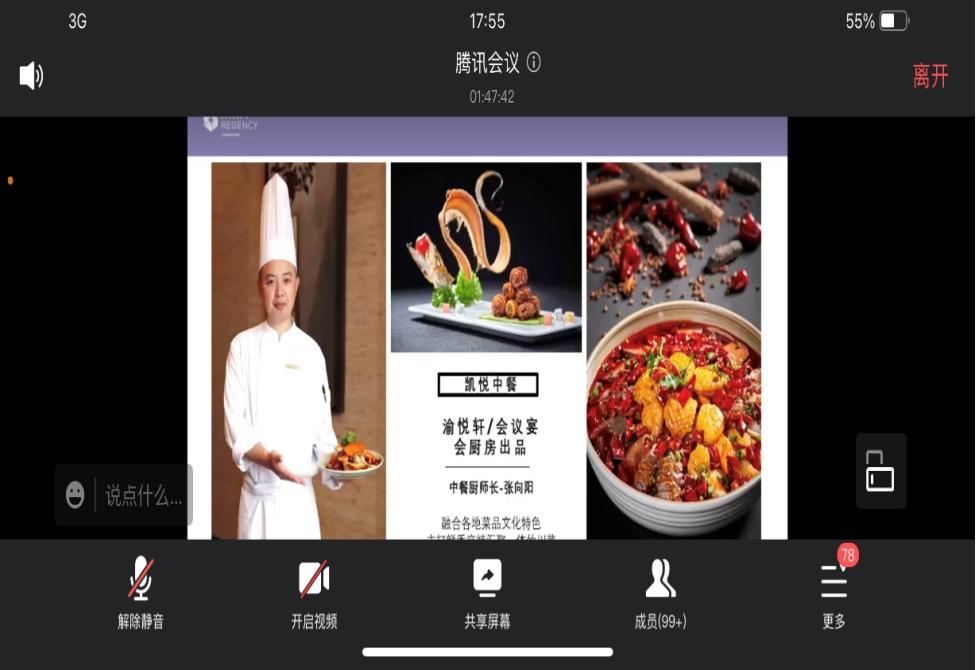 重庆富力凯悦酒店人力资源经理陈璐向2023届毕业生详细介绍了重庆富力凯悦酒店的建立过程、酒店发展历史、酒店经营理念和价值观等。随后从关爱员工身心健康、职业发展、晋升渠道和职工购买五险一金、生日礼物、年奖、定期培训、升职会有培训等方面就同学们最关心的“话题”酒店员工福利及成长进行了讲解。讲解结束后,有就业意向的同学就咨询面试安排及后续事宜等与用人单位进行了线上交流互动,并通过企业微信咨询群与企业进行进一步的沟通和交流。