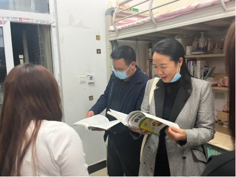 走访过程中,学院领导一行重点走访了与同学们“拉家常、话近况”,了解同学们开学以来学习、生活和宿舍同学关系等情况,关注同学们常态化疫情防控期间的思想动态,检查了寝室大功率电器和内务,还“抽查”了同学们的笔记。