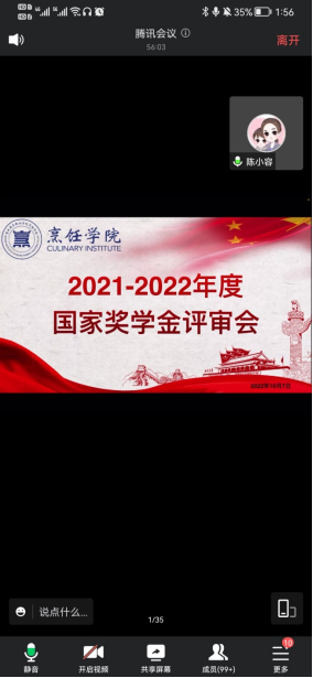 为切实做好学生资助工作,树立先进典型,提升资助育人成效,2022年10月7日中午,烹饪学院2021-2022年度国家奖学金评审会议通过腾讯会议线上举行。烹饪学院党总支书记、院长李伟,党总支副书记陈小容,副院长陈勇、各专业负责人、学团办、辅导员出席评审会,近300名学生线上观摩了评审会。