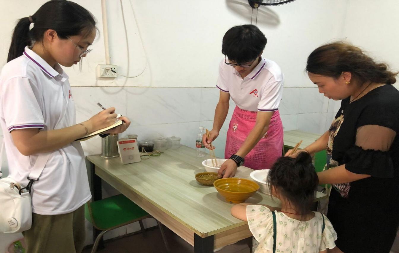 实践团走进西沱天街传承民族文化技艺,体验古镇非遗历史。此次活动从“都巴块美食文化”和“巴盐文化”入手,对石柱少数民族文化、非遗文化进行了学习和调研。团队成员通过观看背盐表演、聆听背盐故事、感悟背盐精神等对巴盐文化有了深刻的认识和了解;通过亲自动手学习制作“都巴块小吃”,强化专业知识学习的同时对都巴块特色美食文化有了更深刻的领悟。