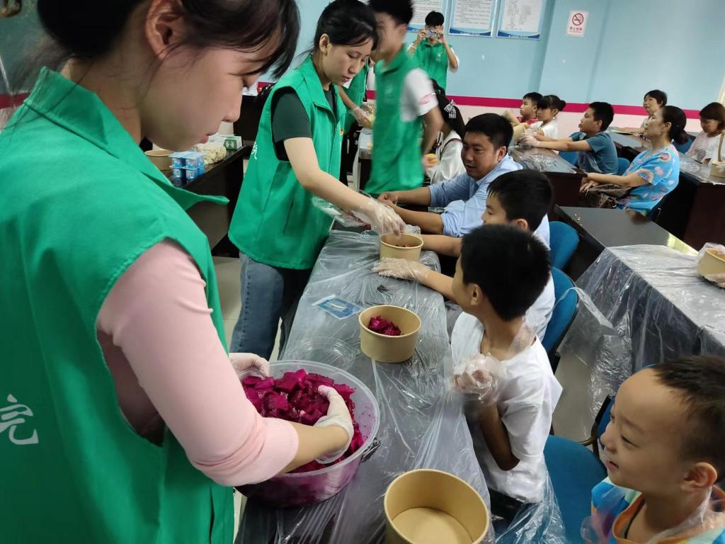 2022年7月5日,烹饪学院南岸校区师生志愿者组成的乡农助力实践团走进一天门社区,为社区儿童开展餐桌礼仪、美食兴趣小组培训和英雄故事分享活动。