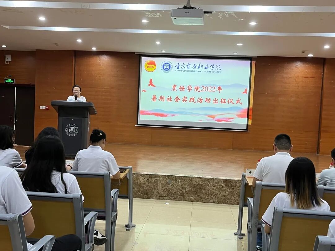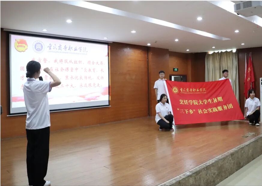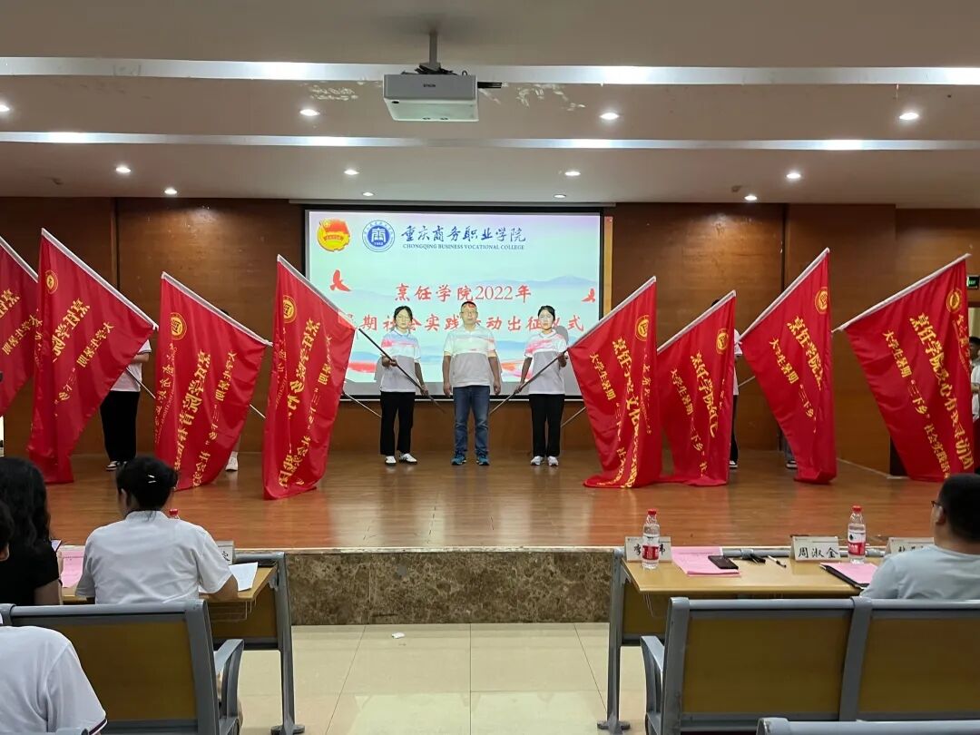 烹饪学院团总支书记邵玉华介绍了此次社会实践活动的安排及相关要求。党总支书记、院长李伟向市级重点团队和校级团队授旗,全体参加出征仪式的实践队员进行了宣誓。