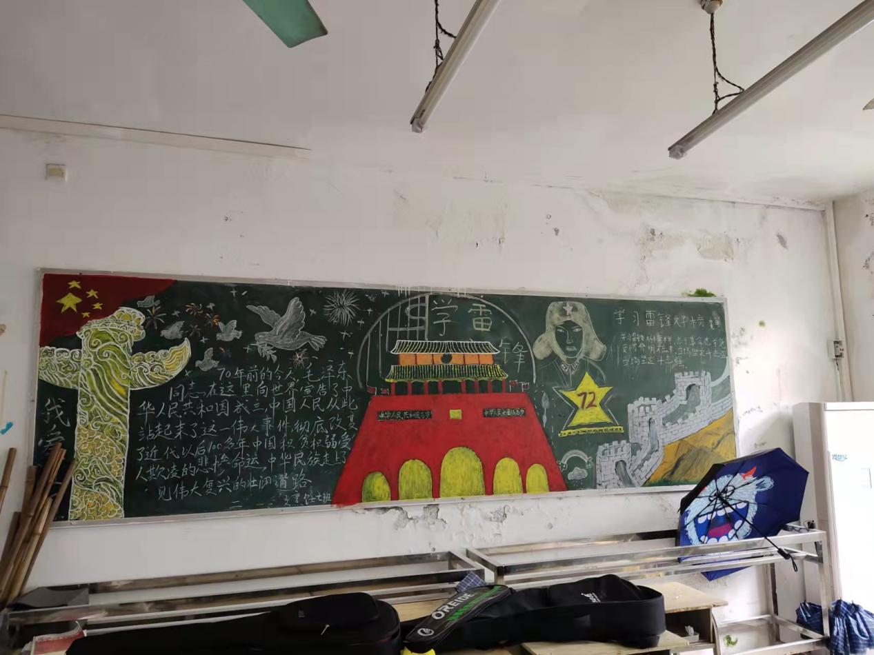 学生会宣传部绘制宣传海报及各教学班制作相关主题板报。