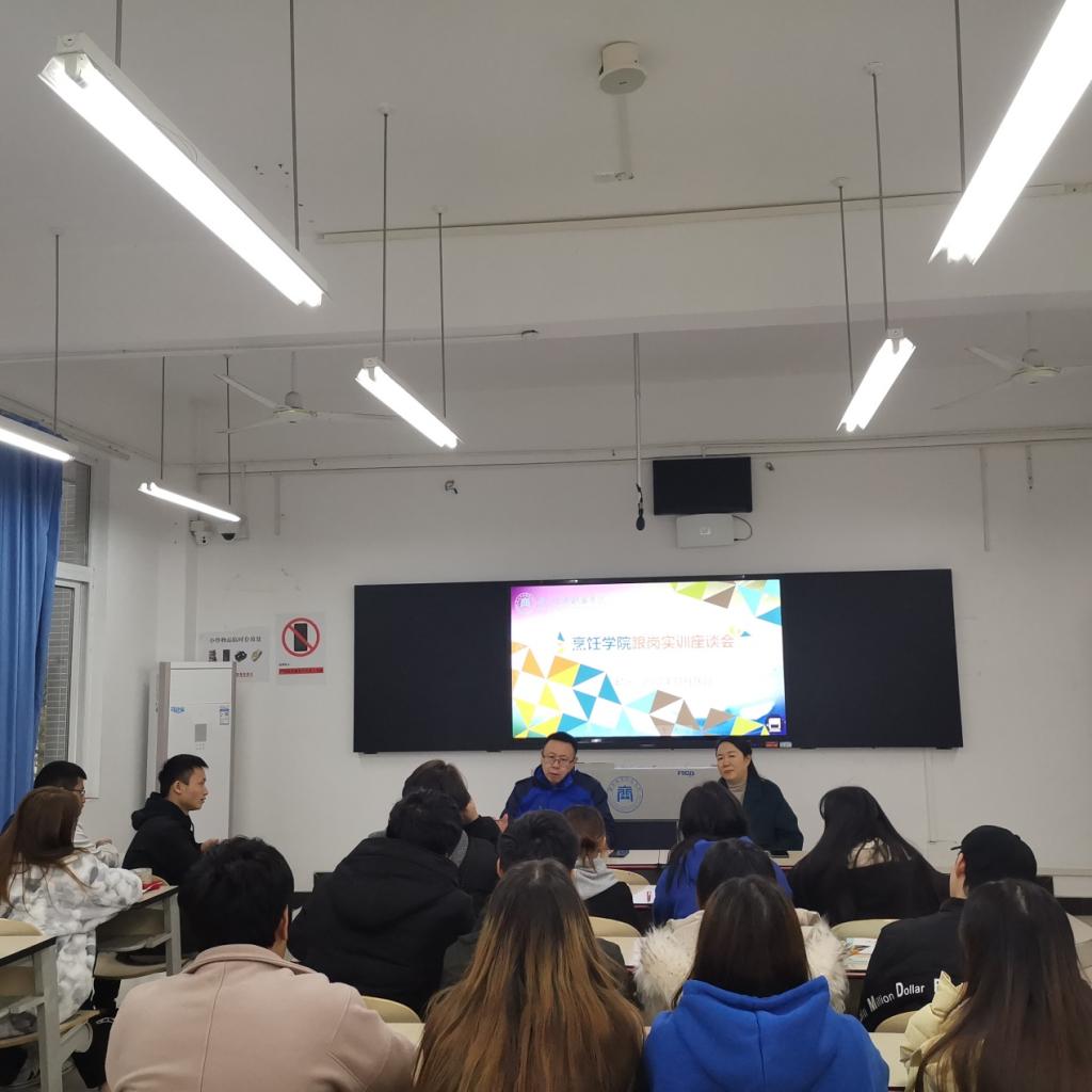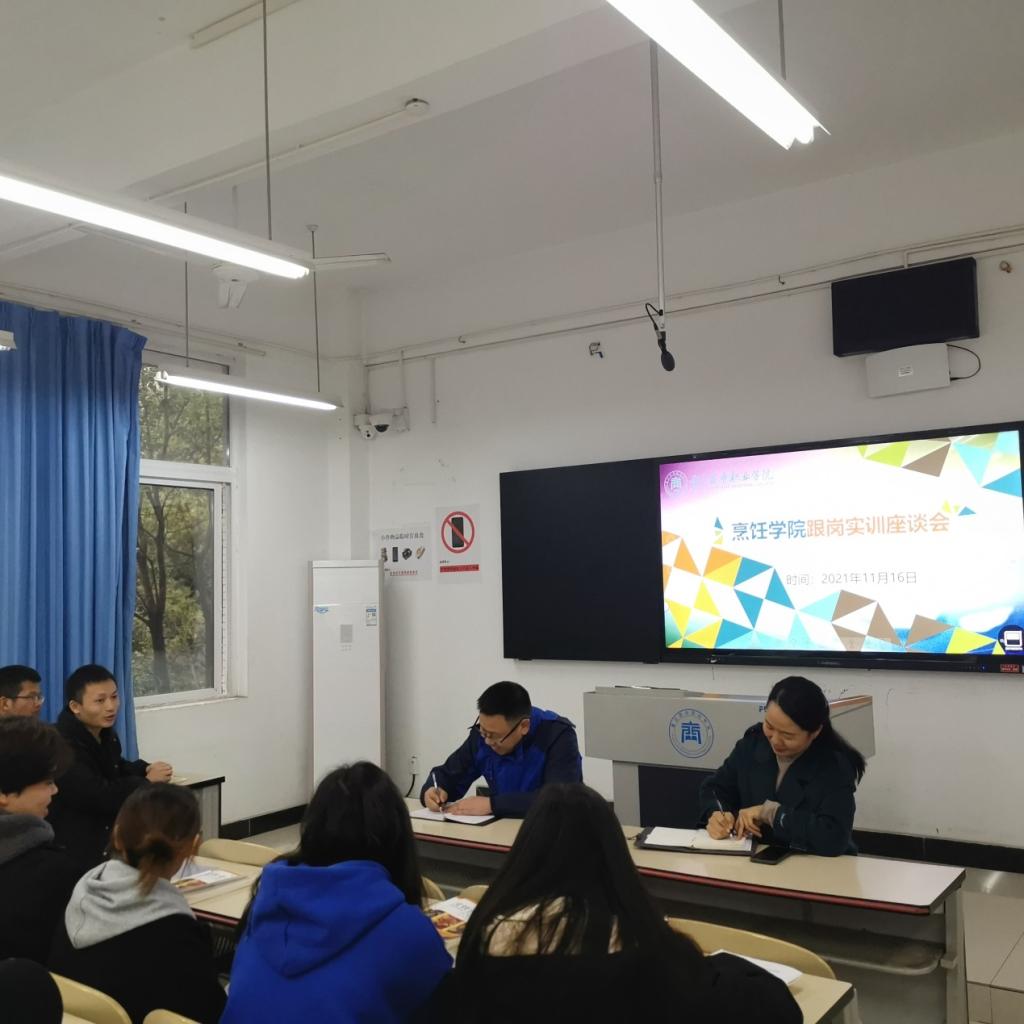 11月16日,烹饪学院2020级学生跟岗实习反馈会在第一教学楼1219教室举行。烹饪学院党总支书记、院长李伟,副书记陈小容、学团办负责人邵玉华、辅导员张亚洲以及2020级烹调工艺与营养1班全体学生参加了反馈会。