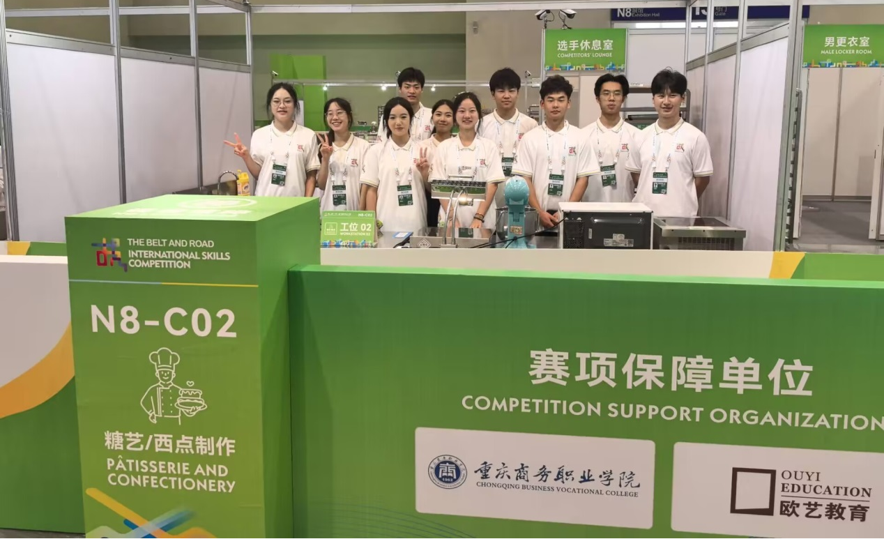 据悉,第二届“一带一路”国际技能大赛是由人力资源社会保障部、国家发展改革委、国家国际发展合作署、重庆市人民政府共同举办。大赛以“技能合作·共同发展”为主题,共有来自61个国家和地区的590名技能精英参赛观摩。结合共建“一带一路”国家产业发展需求、参赛意愿,大赛设置了18个比赛项目,学校作为设备设施支持单位承办了糖艺/西点赛项,30多名教师和40余名学生作为大赛工作人员和志愿者为大赛助力。