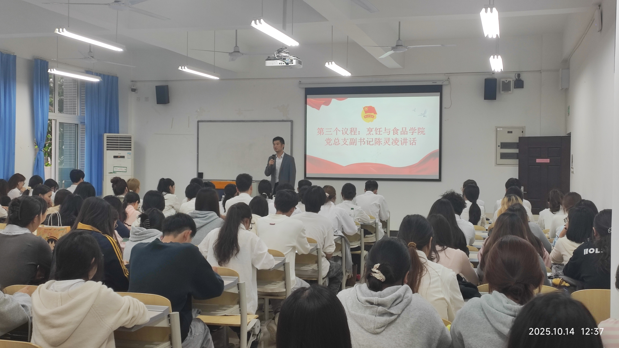 10月14日,烹饪与食品学院第五届团学骨干见面会在2224教室成功举办,学院党总支副书记陈灵凌、学团办主任黄平、团总支和学生会成员及2025级新生干事共同参与。