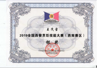 在校期间,曾担任2017级烹调工艺与营养4班班长、辅导员助理、院学生会社团部部长等职务。利用课余时间积极参加专业技能比赛,荣获中国饭店协会2019中国烹饪锦标赛—全国西餐烹饪技能大赛西南赛区院校组银奖(二等奖)。