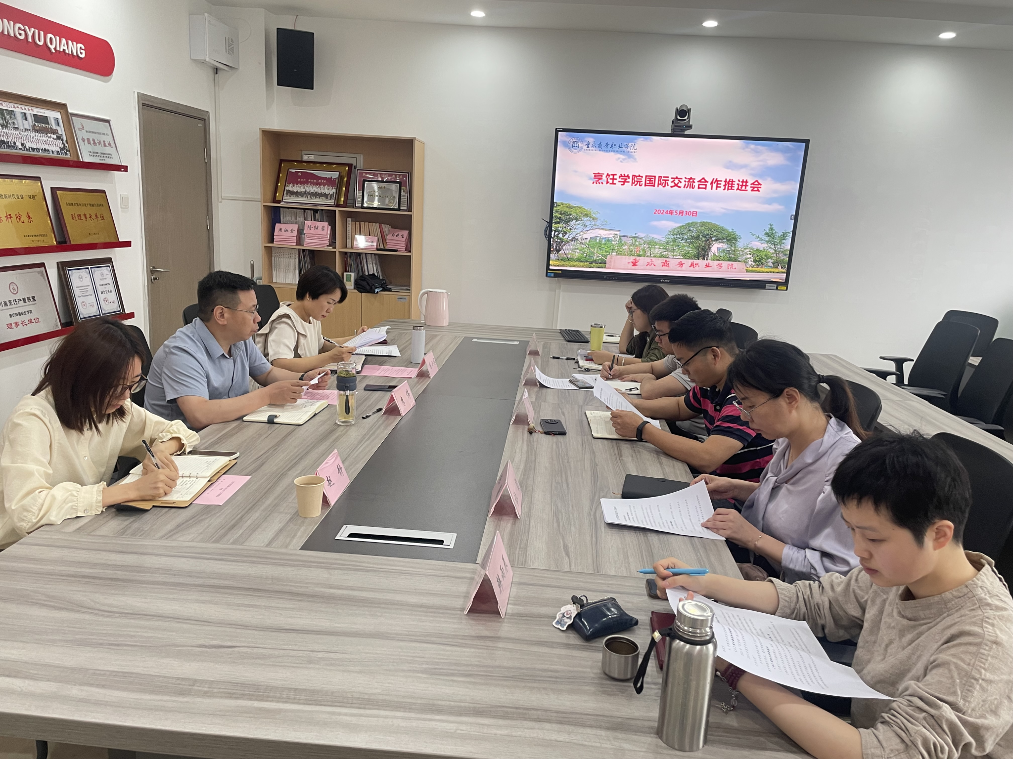 (图/文 任红)5月30日上午,烹饪学院在3412会议室组织召开了国际交流合作推进会,烹饪与继续教育学院党总支书记李伟、副书记陈小容、学校对外合作交流办公室赵静、烹饪学院综合办公室副主任赵伟及相关教师参加了会议