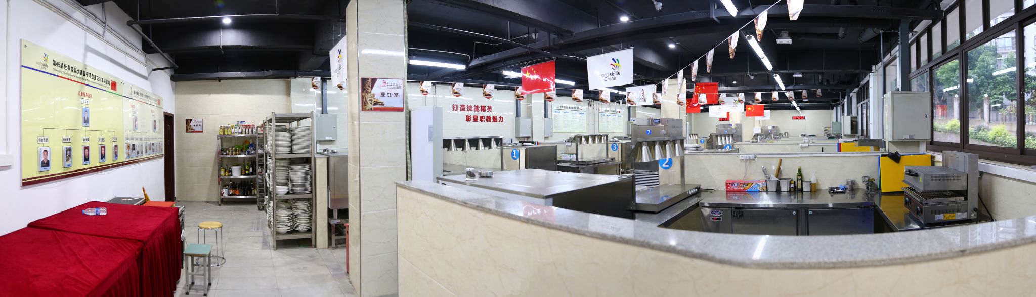 西餐实训基地有工位18个,实训室面积350平方米,实训设备总值300余万元。