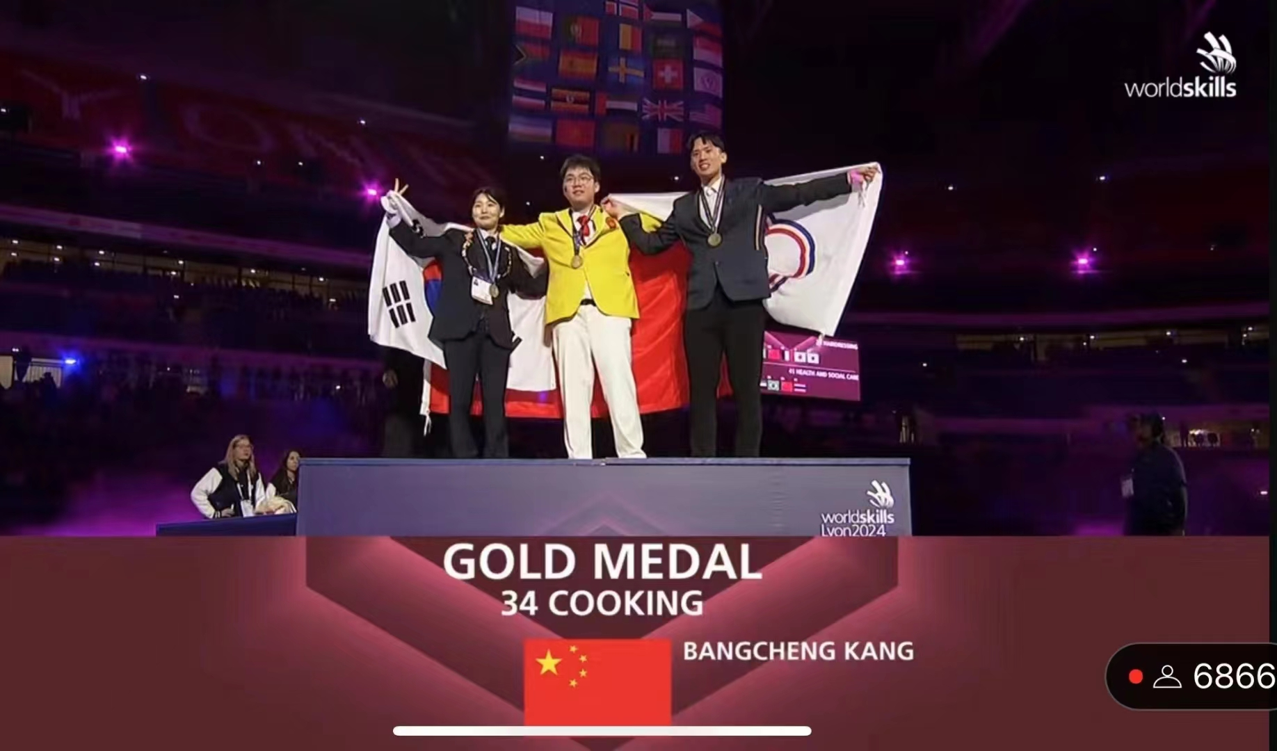 (图/文/张华)圆梦里昂,创造历史。9月16日,从法国里昴传来喜讯,在全球瞩目的第47届世界技能大赛上,学校西餐基地培养的选手康邦成凭借硬核实力,稳定发挥,摘得中国在烹饪(西餐)项目的首枚金牌,实现了中国队在此赛项中金牌零的突破,为祖国争得了殊荣!