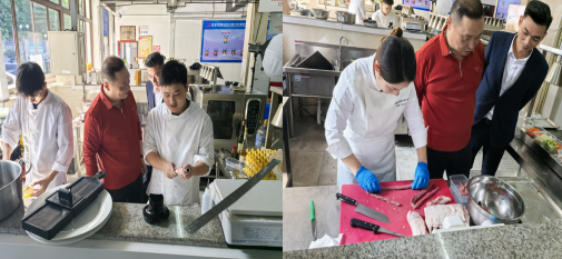 Smith·Shaun Michael先生和陈先生的悉心指导,不仅为我校烹饪(西餐)中国集训基地带来了宝贵的世界技能大赛经验,还引入了培养选手的新理念与前沿方法,为基地建设与发展指明了前进的方向。我们将以此为契机,进一步深化与专家的交流和沟通,强化合作纽带,不断提升基地综合实力和辐射影响力,拓宽国际交流的广度与深度,为实现烹饪学院“西部一流、国内知名、国际有影响力”的宏伟蓝图迈出了坚实而有力的一步。