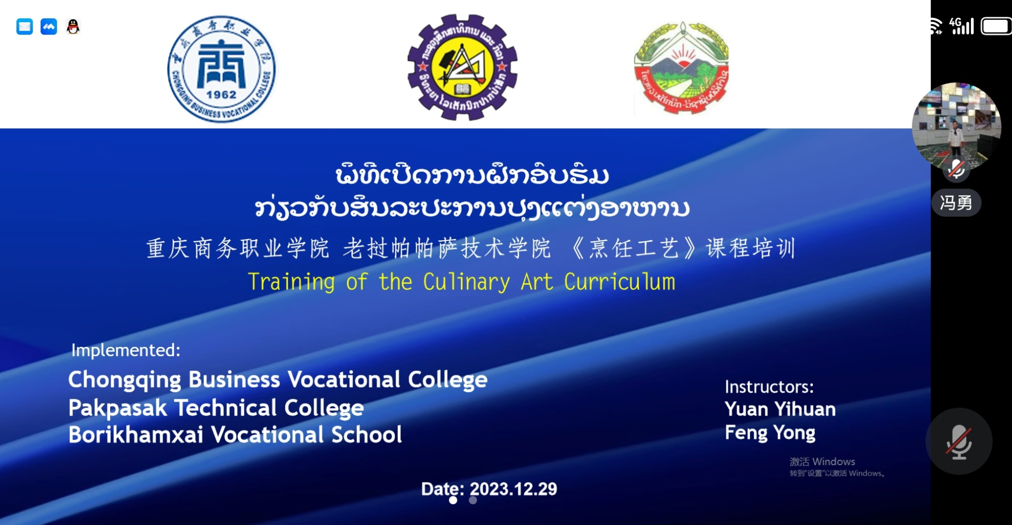 (图/文 滕婷婷)为进一步提升我校“双高”专业群国际化建设水平,拓宽专业群优质教学资源和教学标准输出渠道,加快推进中国职业教育品牌国际化进程,12月29日,我校联合老挝帕帕萨学院联合举办的烹饪专业《烹饪工艺》国际课程培训班正式开班。开班仪式采用视频连线方式进行,我校主会场设在烹饪实训中心。学校质量处处长汤玉梅、烹饪学院院长蔡顺林、烹饪与继续教育学院党总支副书记陈小容、培训班讲座专家代表等线上出席了开班仪式。老挝教育体育部职教局副局长赛康·潘塔翁以及32名老挝帕帕萨技术学院师生线上参加仪式。开班仪式由冯勇主持。