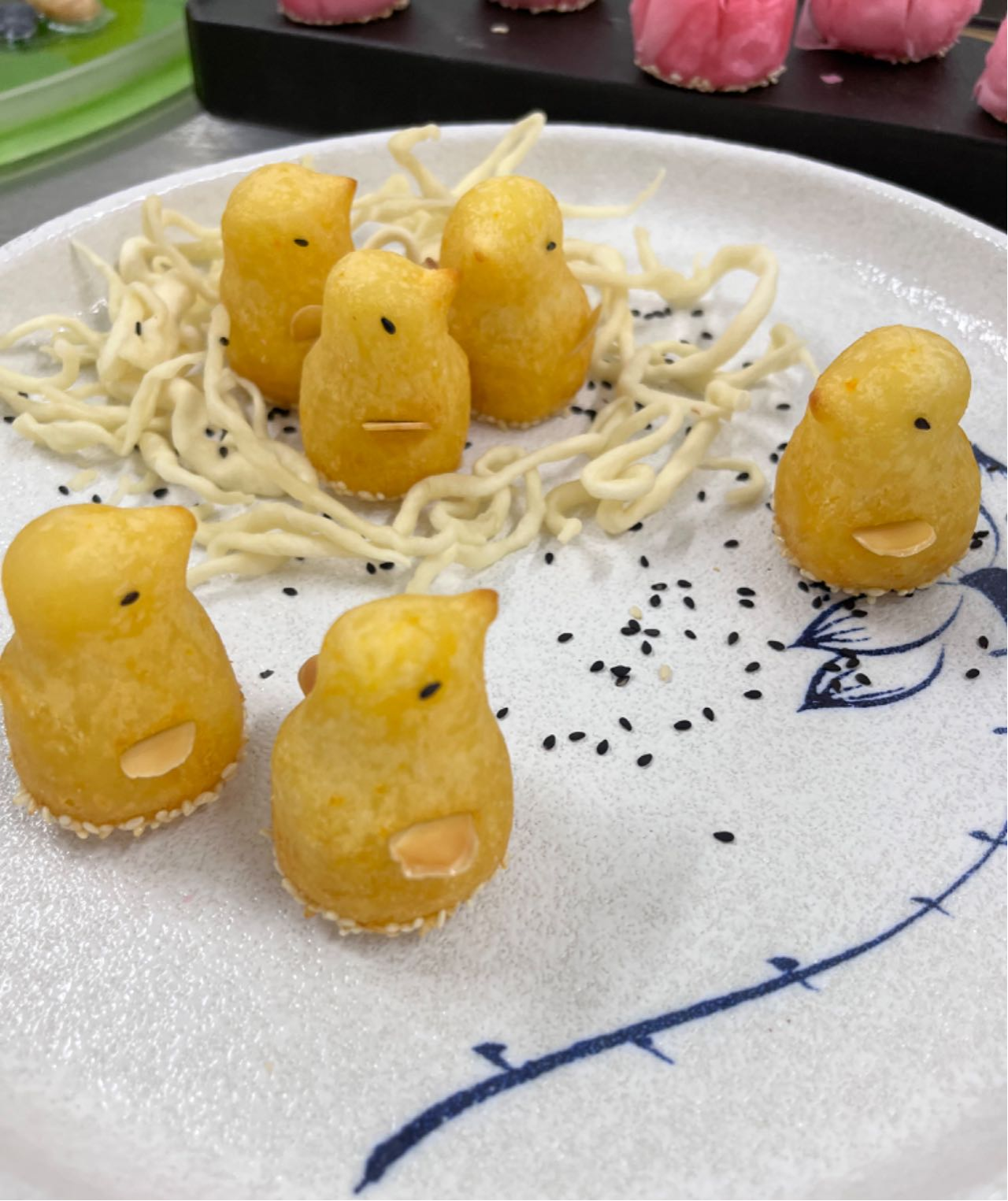 本次比赛展现了选手扎实的基本功和敏捷的临场应变能力,涌现出了许多优秀精美的作品,茄子酥、天鹅酥、萝卜酥、花瓶酥、糖果酥、荷花酥、库尔勒香梨包、咕咕小鸡、提褶包等。