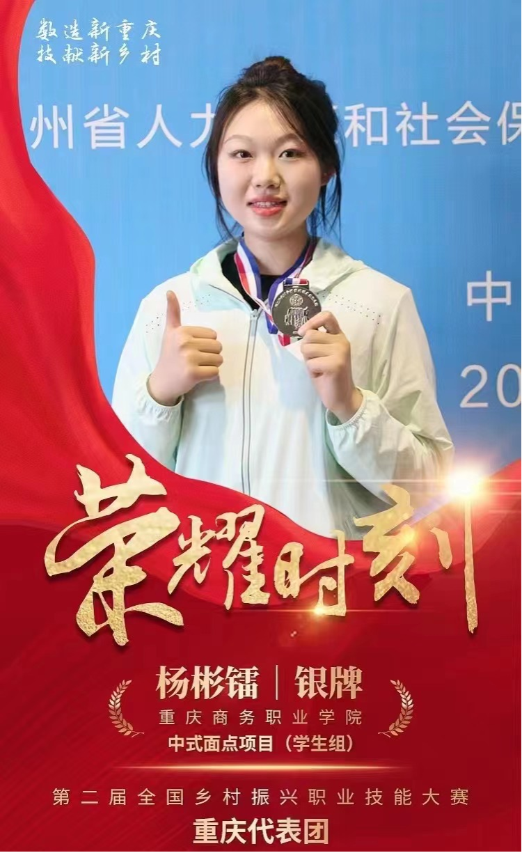 (图/文 周勤怡、李景5月8日-10日,由人力资源和社会保障部、农业农村部和贵州省人民政府主办的第二届全国乡村振兴职业技能大赛在贵阳举行。烹饪学院2022级中西面点工艺专业4班杨彬镭同学荣获中式面点项目学生组银牌、中西面点工艺专业教师李景荣获中式面点项目职工组优胜奖。