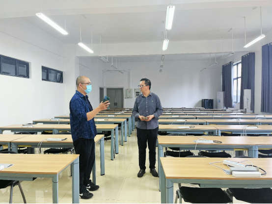 在调研座谈会上,马金海介绍了我们学校和学院的基本情况、专业建设及发展规划等。重庆理工大学人工智能学院党委书记钟连超对我院的到访表示热烈欢迎,副院长王勇介绍了学院的基本情况、专业建设、人才培养、校企合作模式等。副院长刘斌介绍了学院未来规划和发展方向,教学实验中心主任姜彬详细介绍了实训室的建设情况,双方围绕新一代信息技术背景下信息技术类专业建设、校企产学研合作具体模式以及党建引领学院高质量发展等问题进行了深入交流。接着,马金海一行参观了重庆理工大学人工智能学院相关的实训室。