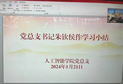 1月21日,人工智能学院党总支在腾讯会议开展2024年1月理论学习中心组学习会。学院全体副科级以上干部、总支委员参会,会议由党总支书记朱钦侯主持。
