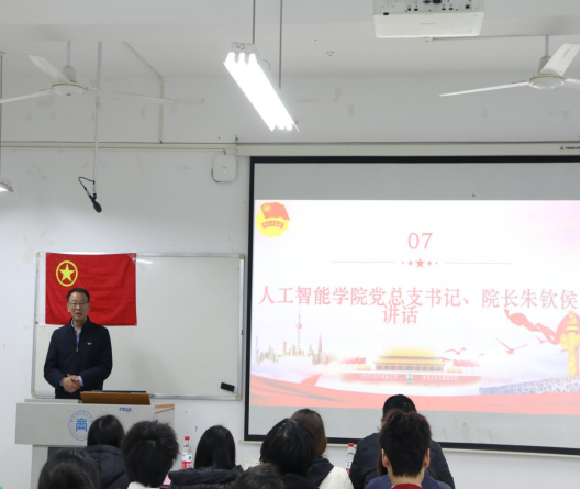 会上,新老团员代表分别进行了发言,展示了共青团员的优良作风和远大抱负。在老团员带领新团员宣誓后,雄壮的《光荣啊,中国共青团》旋律响起,全体新入团成员齐声高唱,歌声饱含激情,响彻会场。每一字、每一句,都蕴含着他们对共青团的无比热爱与向往。伴随着庄严旋律,青年们更加深刻地体会到作为团员肩负的责任与荣耀,青春的信念在此刻凝聚成熠熠生辉的誓言。最后人工智能学院党总支书记、院长朱钦侯老师发表讲话,并强调:青年之于党和国家而言,最值得爱护、最值得期待。团员意味着拥有更强的责任、更高的才能,团员应努力提升自身文化及专业技能,能够在团组织活动以及社会中展现担当精神,高质量完成任务。