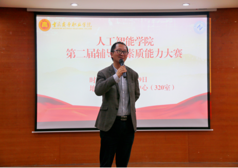 为切实增强我院辅导员的育人能力,促进学工团队综合素质进一步提升,人工智能学院于2023年3月7日、9日顺利举办了第二届辅导员素质能力大赛,本次大赛分为笔试和现场技能测试两个环节。其中笔试于3月7日13:00在1429举办,根据笔试结果,从我院23名辅导员中选出8名辅导员参加技能测试。现场技能测试于3月9日14:30在320学生活动中心举行,技能测试分为案例分析、谈心谈话两个环节。