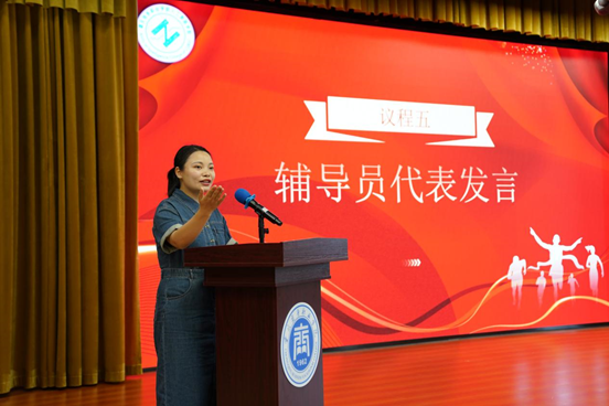 教师代表龚玉霞寄语毕业生要有追求卓越的信念,立志成为国家之栋梁,为祖国的繁荣昌盛贡献自己的力量。辅导员代表万江丽为毕业生送上祝福,鼓励同学们永远保持一颗好奇心、自信心、感恩心,常回母校看看。优秀毕业生代表、2021级云计算机应用1班李诗雨上台分享了自己在学校的高光时刻,并对母校和恩师们致以衷心的感谢和崇高的敬意。
