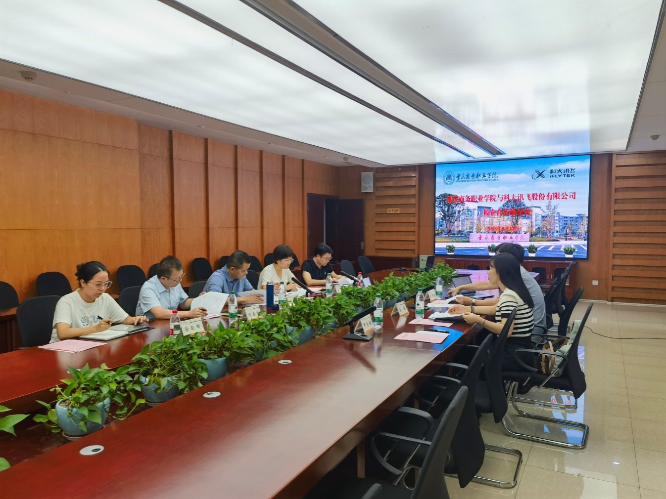 2025年9月17日,重庆商务职业学院与科大讯飞股份有限公司校企合作研讨会在学校第三会议室召开。会议由重庆商务职业学院副校长贾小波主持,学校人工智能学院党总支副书记、副院长何春林,副院长王芳;企业高教行业总监曾娟,高教运营总监田荣阳,产教融合咨询经理罗永利等9人参会。