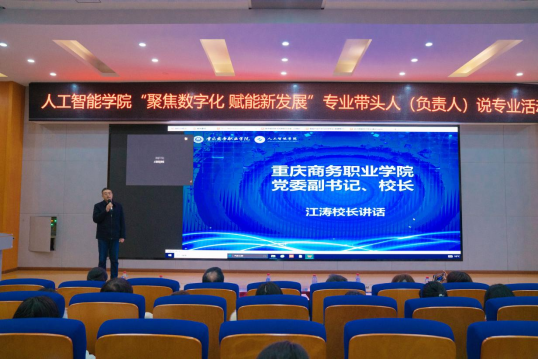 为进一步加快专业设置与产业需求对接,理清专业建设思路,进一步深化专业建设和课程改革,全面推动学院专业内涵建设,促进专业建设高质量发展。1月3日下午,人工智能学院在学术报告厅开展专业带头人(负责人)说专业活动。本次活动特邀学校党委副书记、校长江涛,重庆电子工程职业学院电子与物联网学院教授刘浩,重庆电子工程职业学院人工智能与大数据学院教授付雯出席,各专业带头人(负责人)、人工智能学院全体教职工参加,活动由学院院长王超主持。