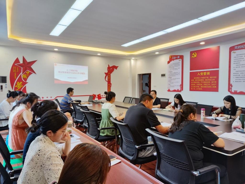 2022年6月29日下午14:30,人工智能学院在1522会议室召开。会议由学院党总支副书记牛怡君主持召开,学团办工作人员及全体专职辅导员参加本次会议。