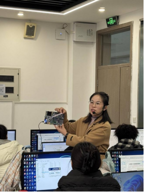 本次活动主要针对专任教师曾建梅开展了《单片机应用技术》课程思政公开课后组织的交流研讨。曾老师对项目四显示与键盘接口技术的任务验证,以“精准高效、精益求精”为核心,将工匠精神融入51开发板程序下载、功能调试等全流程,通过“标准明确—过程管控—评价激励”落实职业素养培养。以LCD1602显示“CHONG QING”为载体,将地域文化、科技发展与家国情怀结合,实现“技术操作—文化认同—责任担当”的价值传导。