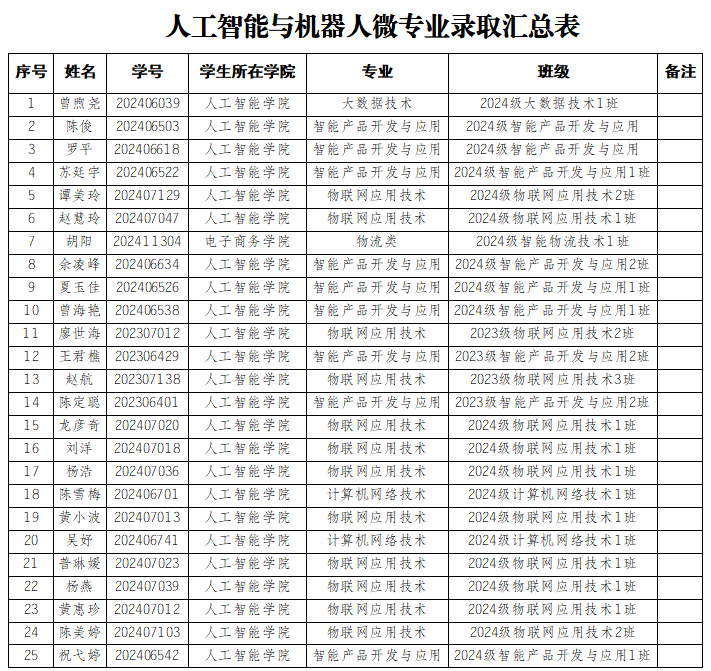 重庆商务职业学院人工智能及机器人微专业录取公示