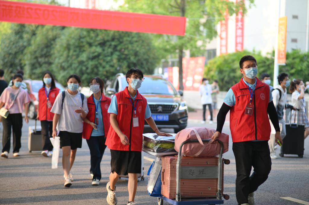 本次迎新活动志愿者们本着饱满的热情、积极的态度,为新生提供周到的服务,从咨询引导、行李搬运到核酸采样,无不展现青年志愿者们吃苦耐劳的奉献精神。