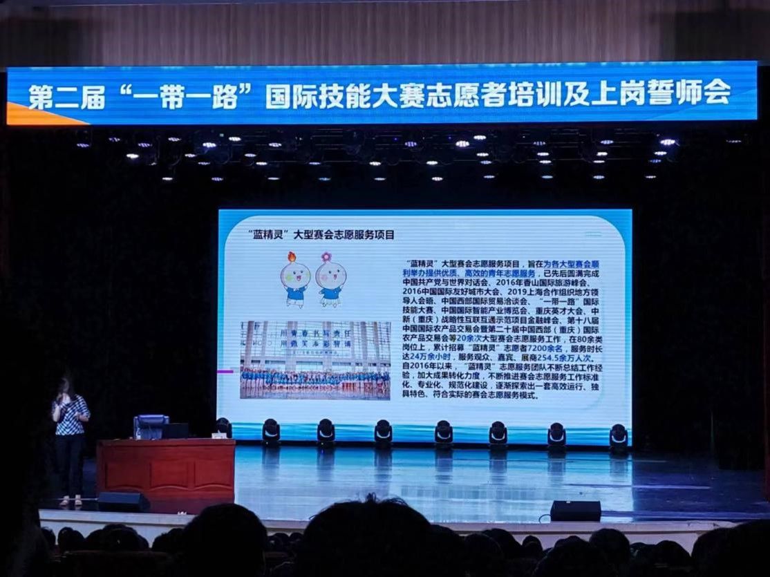 为提供更好的志愿服务,展现“蓝精灵”志愿者的专业化水平,2024年6月16日,第二届一带一路国际技能大赛志愿者培训及上岗誓师会在重庆邮电大学举行。我校20名志愿者与其他13所高校的500余名“蓝精灵”参与培训。