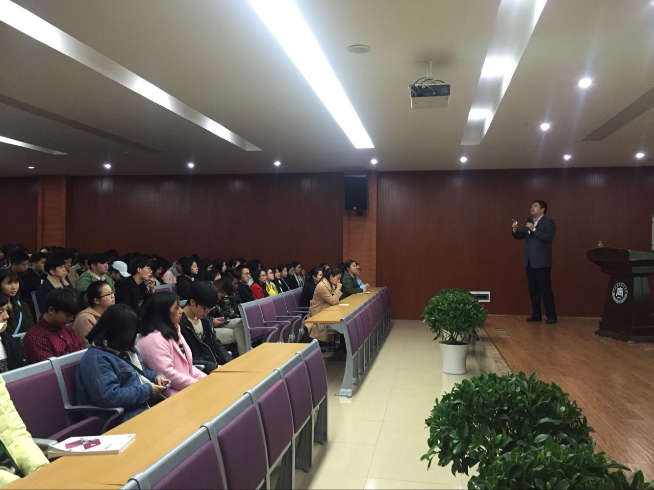 李光启深入浅出的就宪法确立的国家根本制度、根本任务、宪法立法的内容、宪法同立法的关系、法律规范效力、阶级法律效力冲突的审查等内容进行了系统、全面的讲解。李老师指出,宪法的权威来自人民的真心拥护和真诚信仰,国家尊重和保障人权是宪法的核心价值。李老师旁征博引、幽默诙谐的演讲风格赢得了现场观众的阵阵掌声,深化了同学们对法律知识的了解,增强了宪法意识。